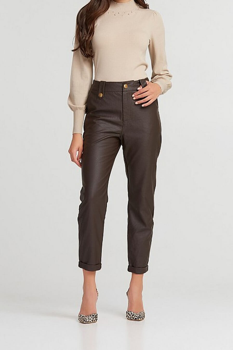 • Chino παντελόνι με δερμάτινη όψη διακοσμημένο με χρυσά κουμπιά