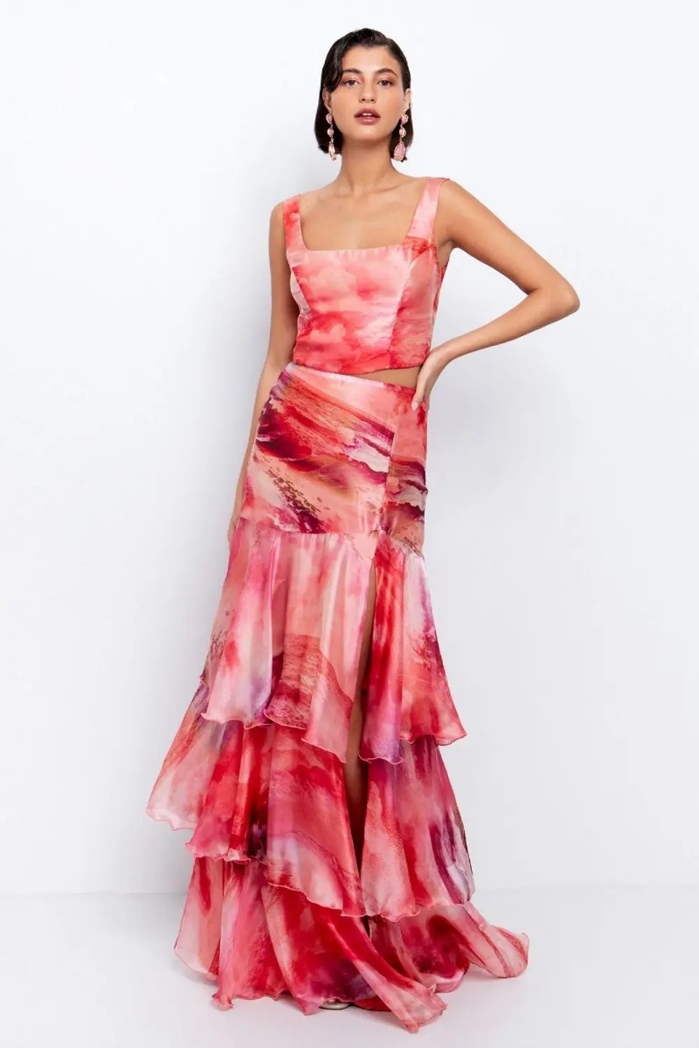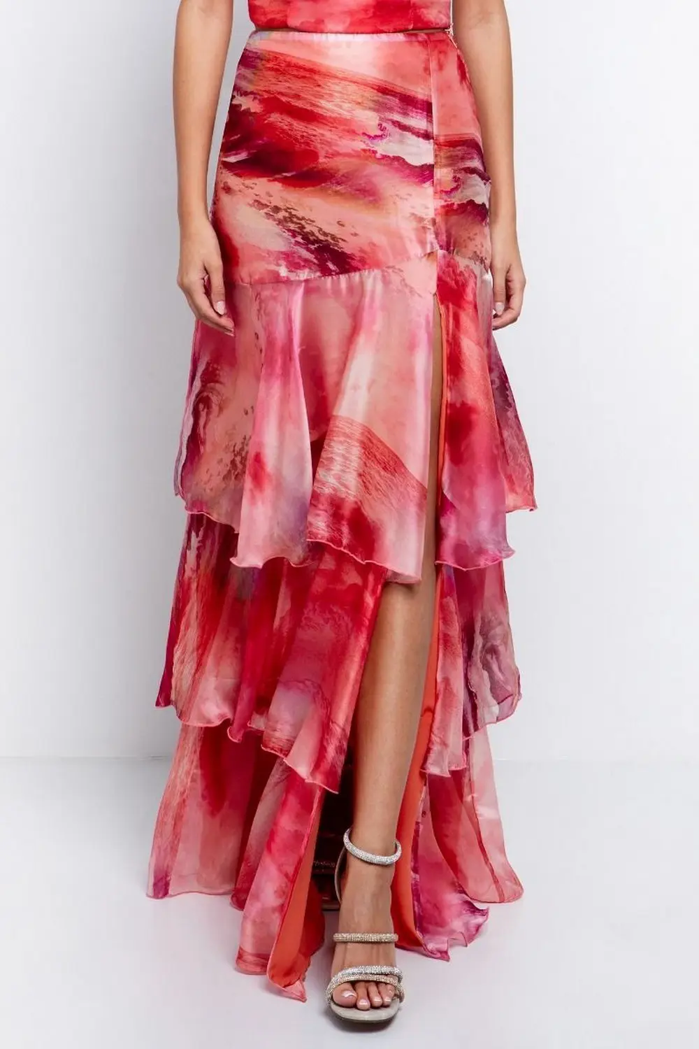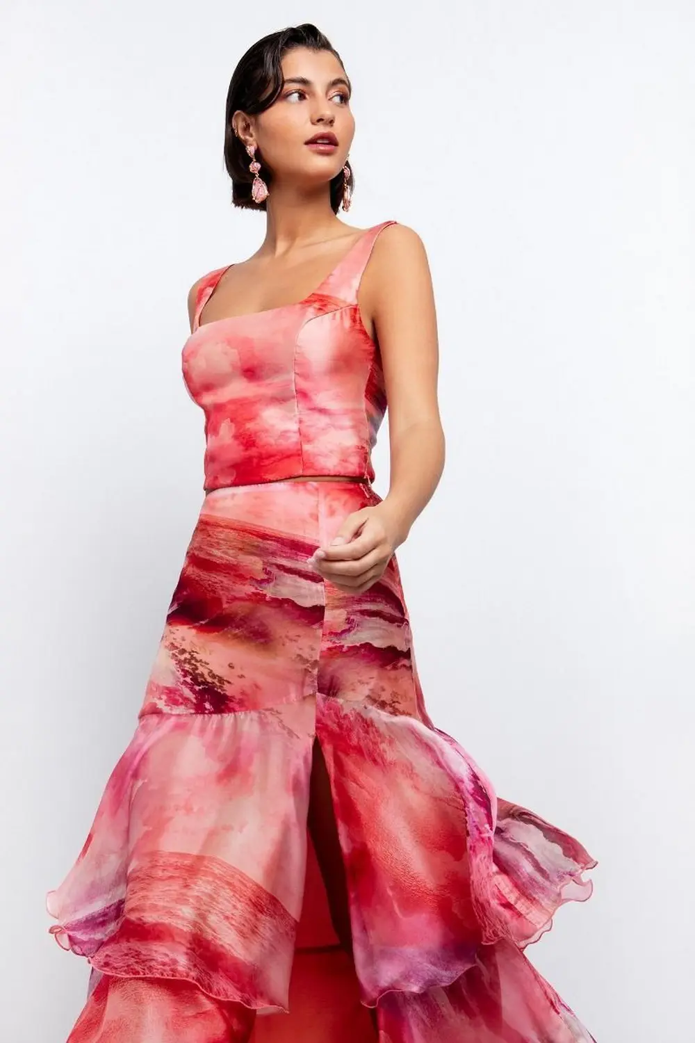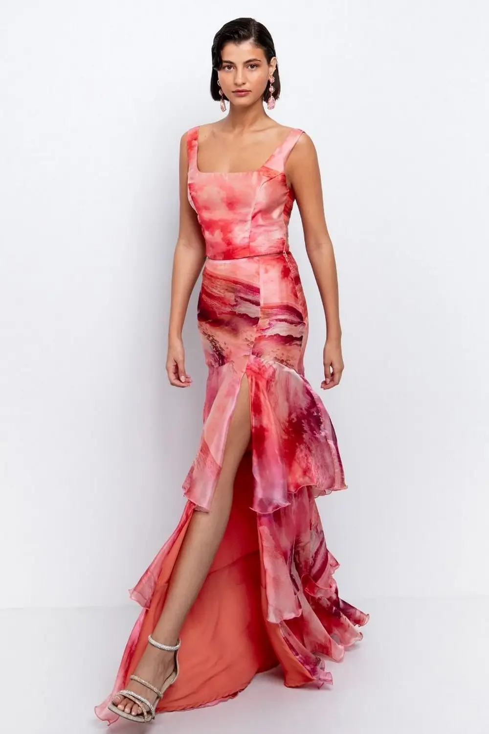 - Σχέδιο layering με βολάν & μπροστινό σκίσιμο