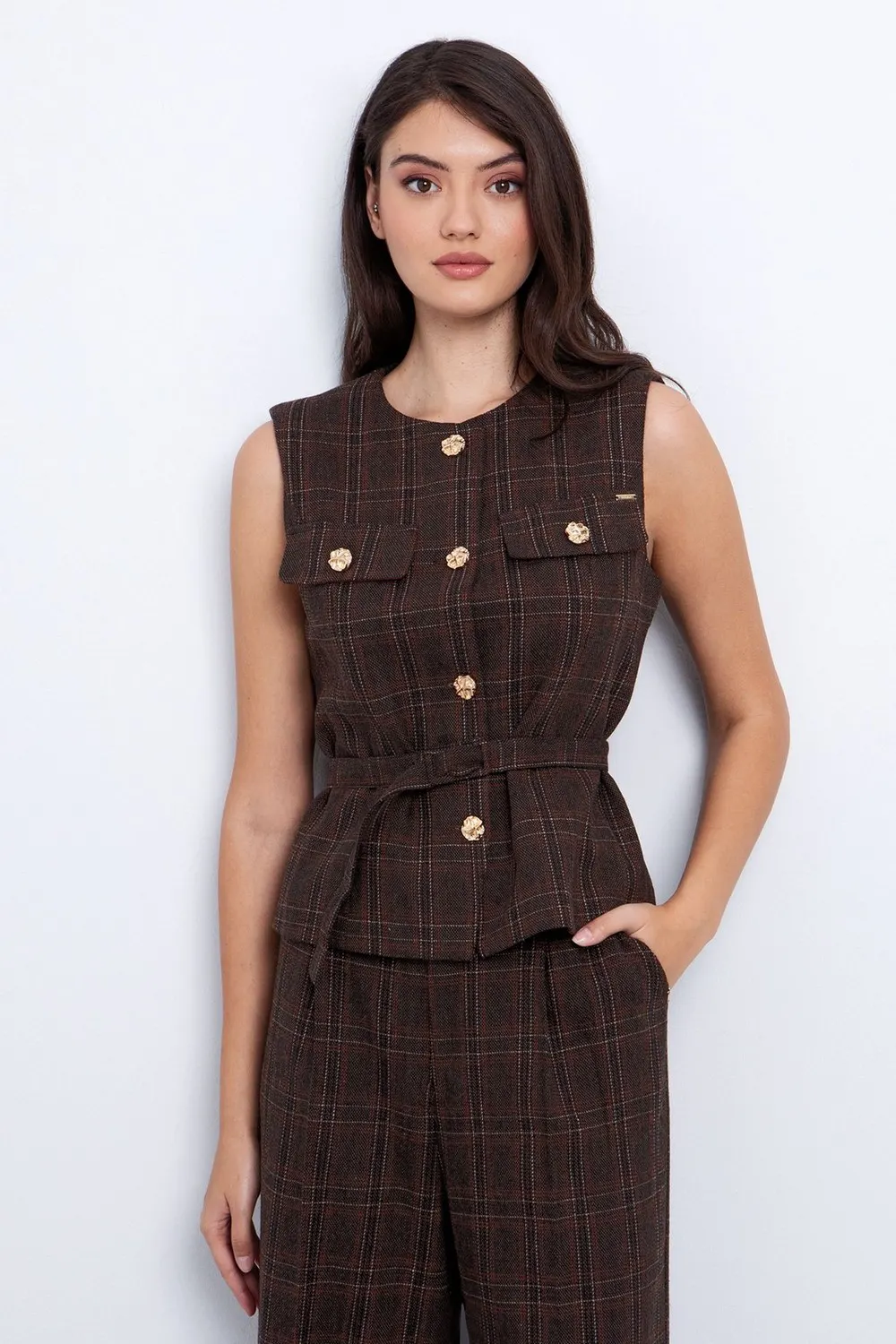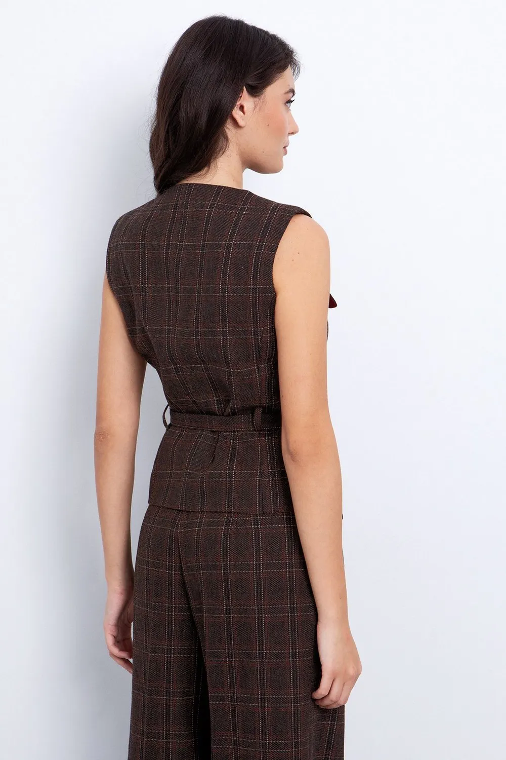 Καρό γιλέκο με ζωνάκι 40-0828-225