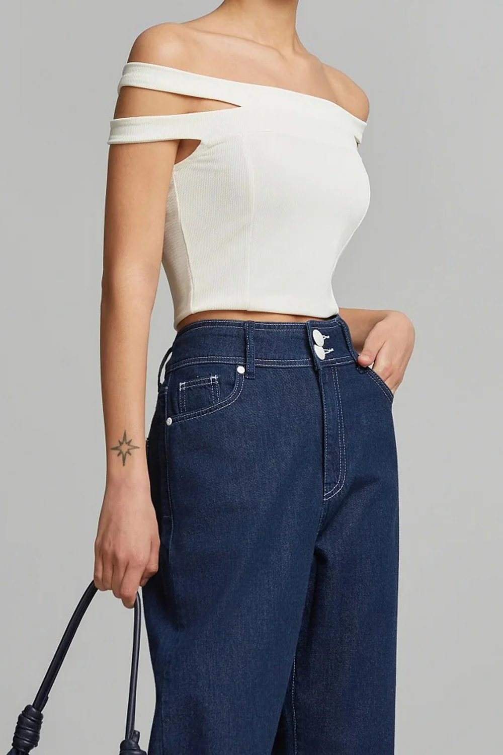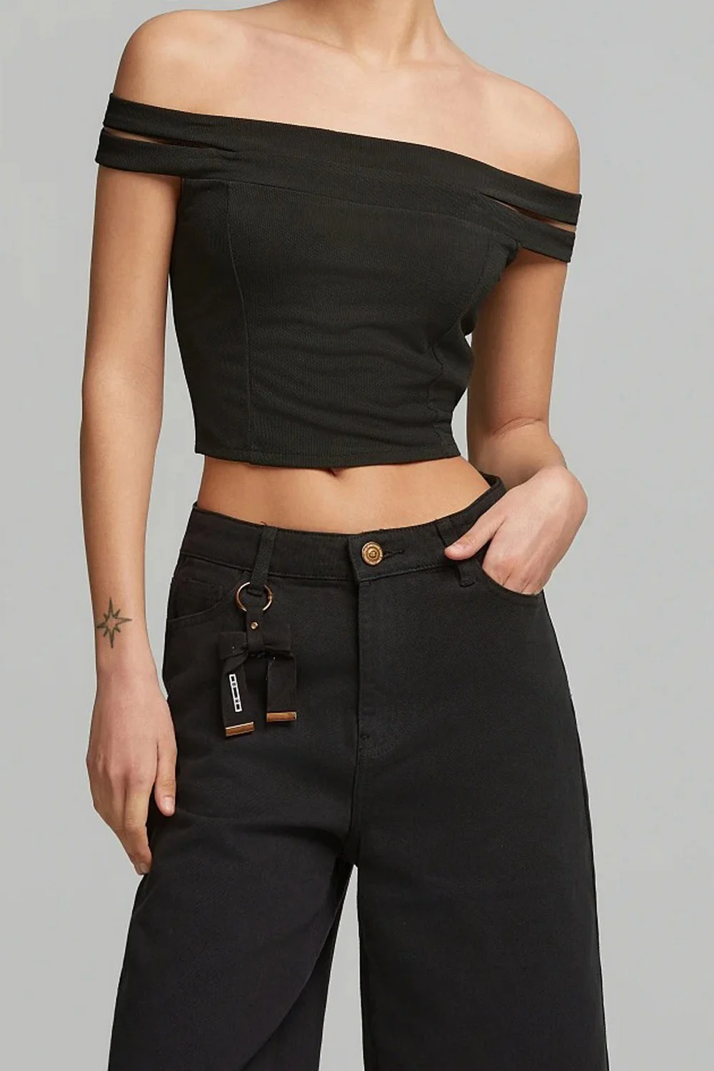 • Κροπ μπλούζα με κοψίματα στα μανίκια και ελαστική εφαρμογή