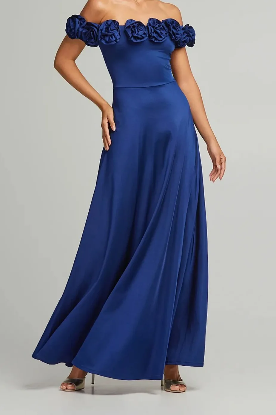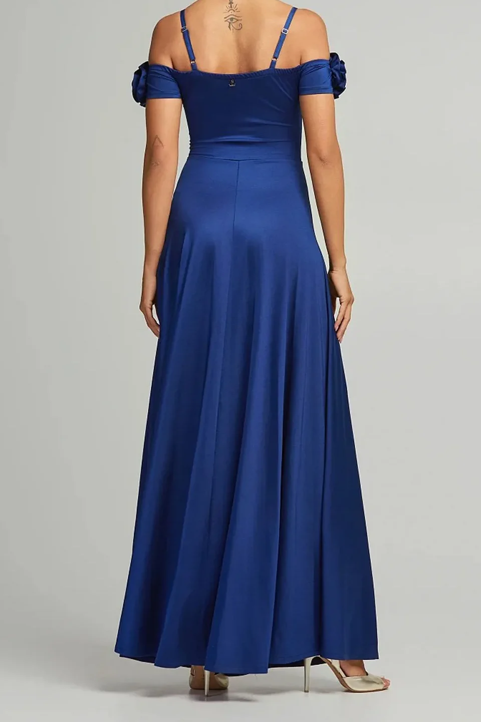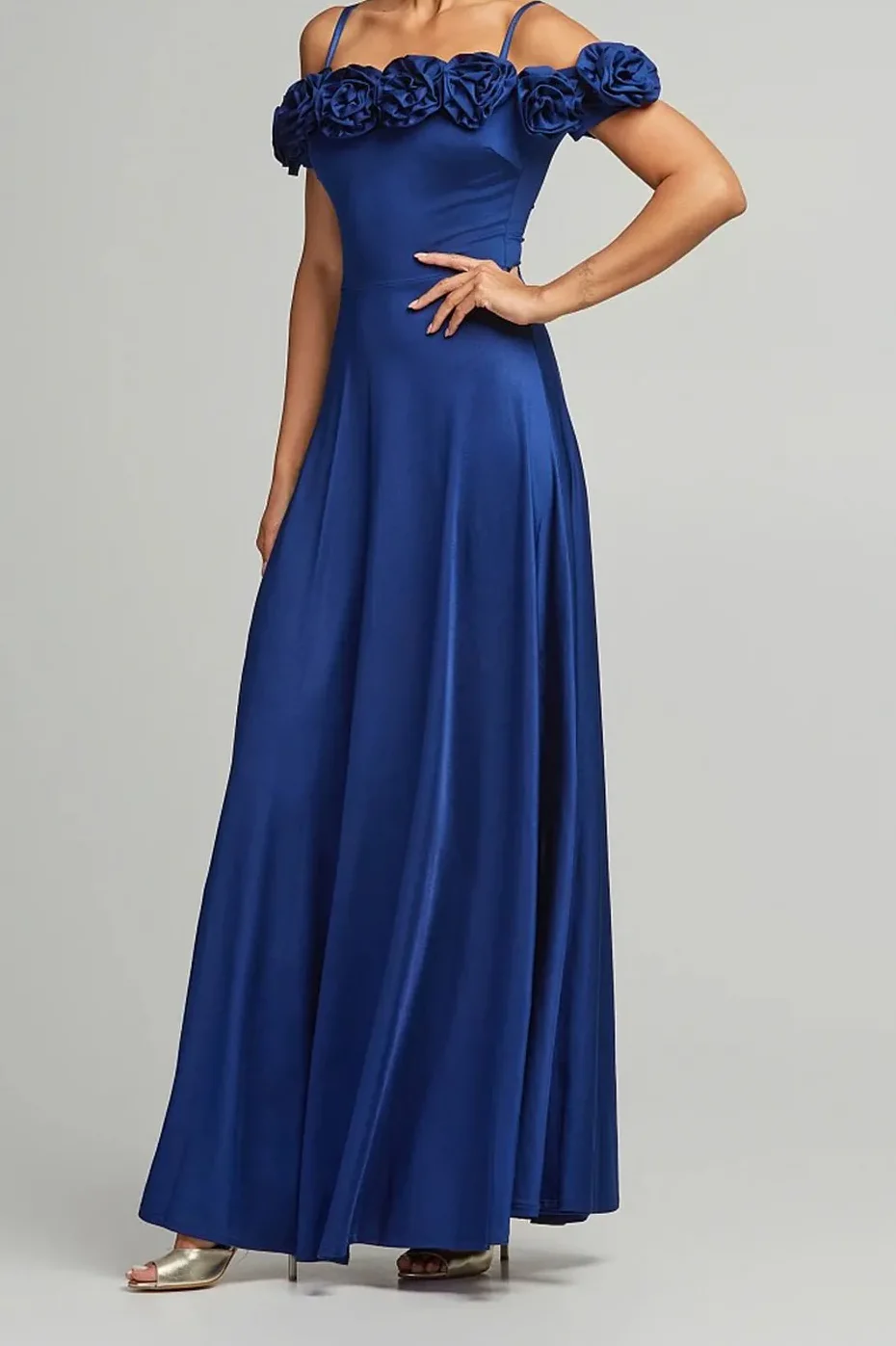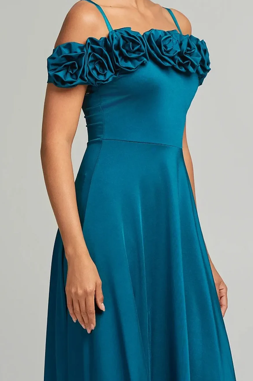 • Μάξι φόρεμα με απλικέ λουλούδια στο μπούστο και ρυθμιζόμενες τιράντες
