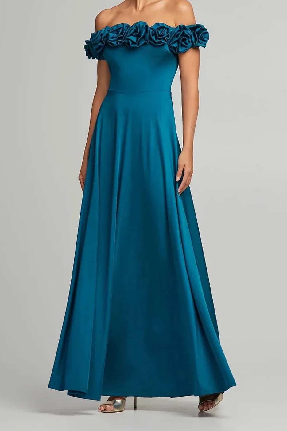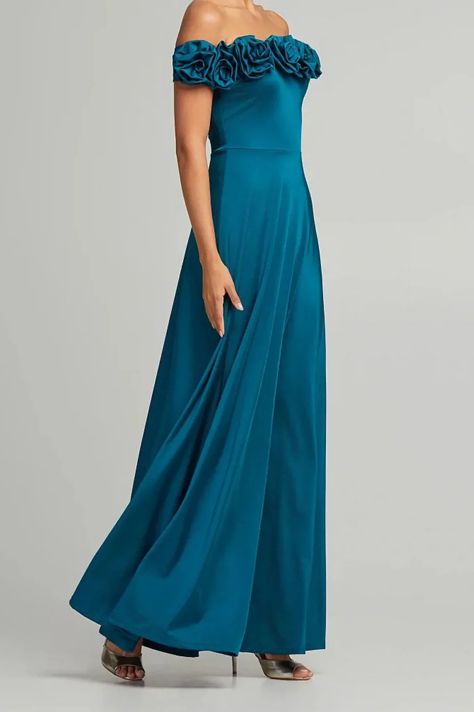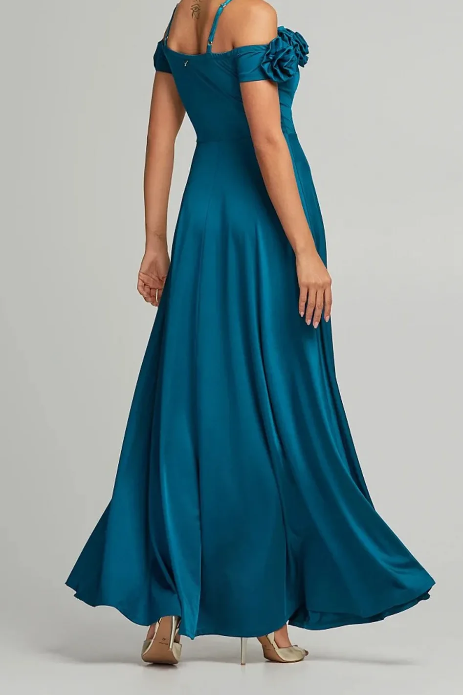 • Μάξι φόρεμα με απλικέ λουλούδια στο μπούστο και ρυθμιζόμενες τιράντες