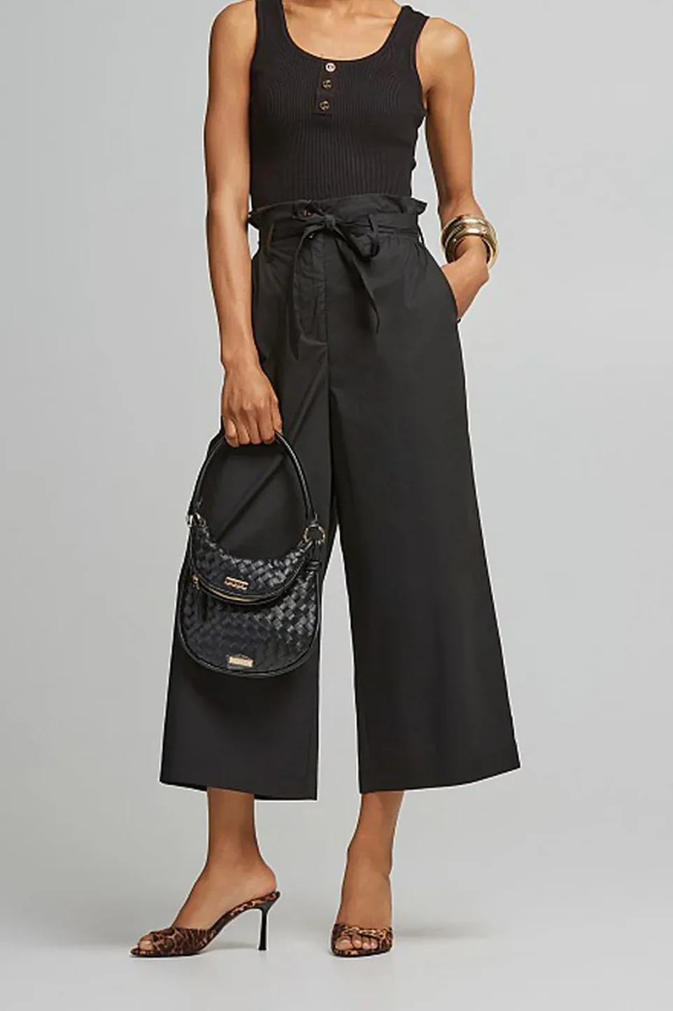 - Ψηλόμεσο κροπ παντελόνι από ποπλίνα με σούρες