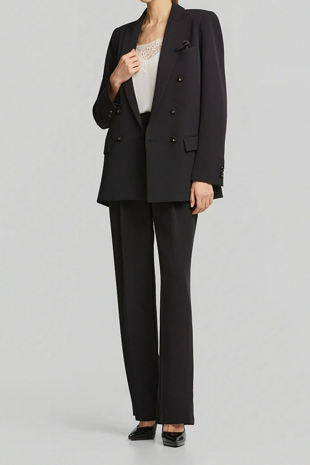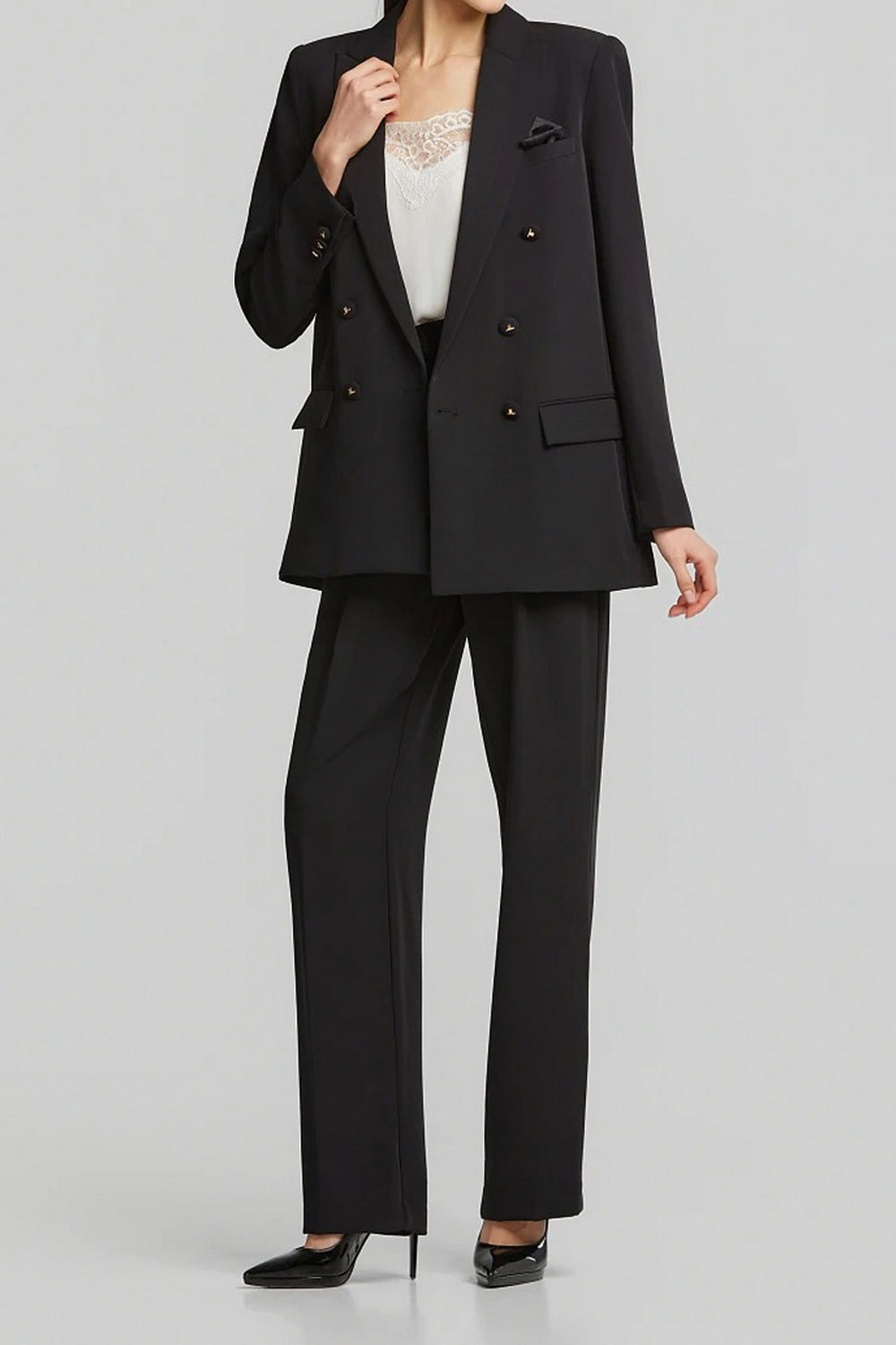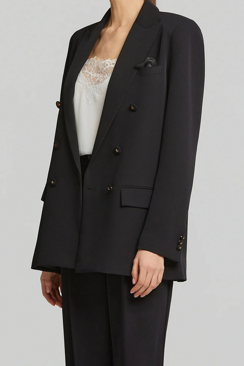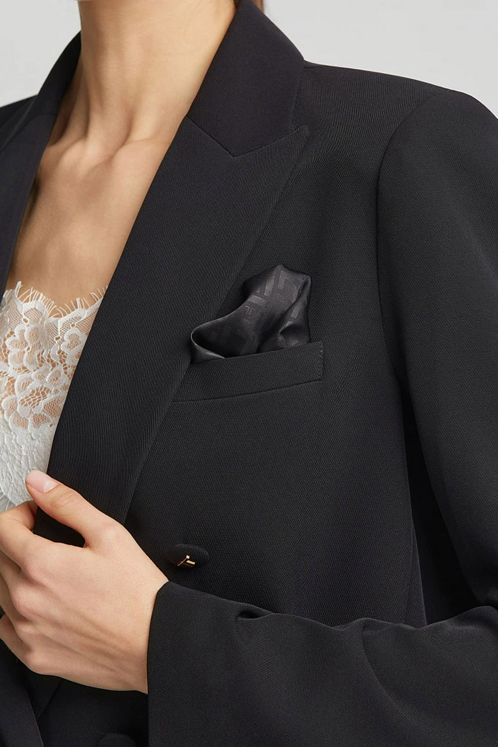 - Σταυρωτό κρεπ σακάκι με ποσέτ και τσέπες