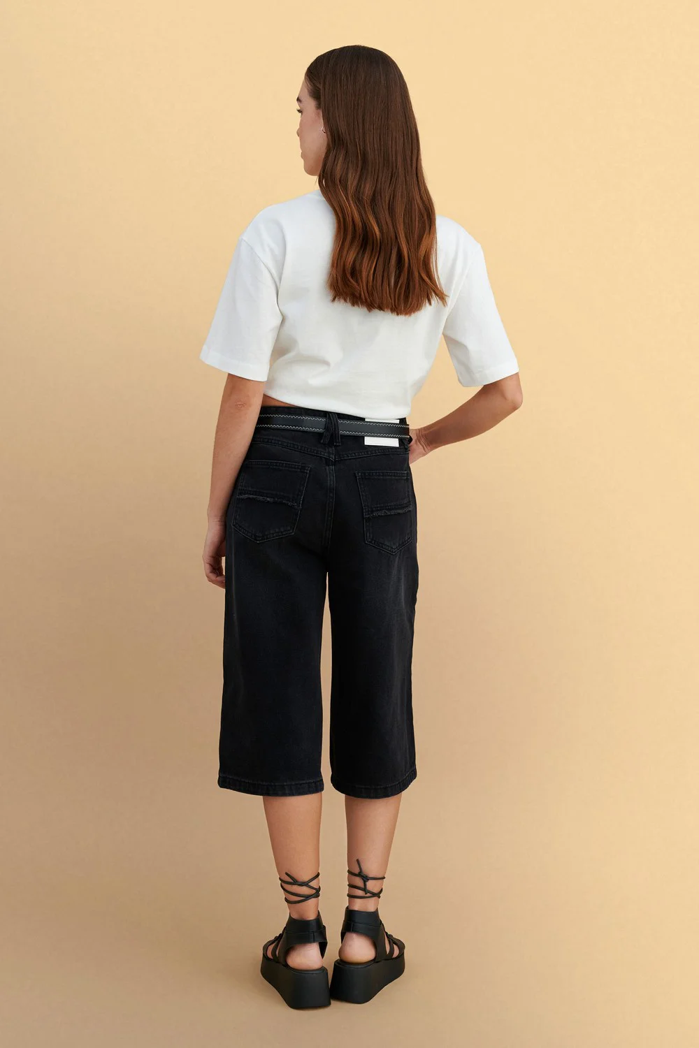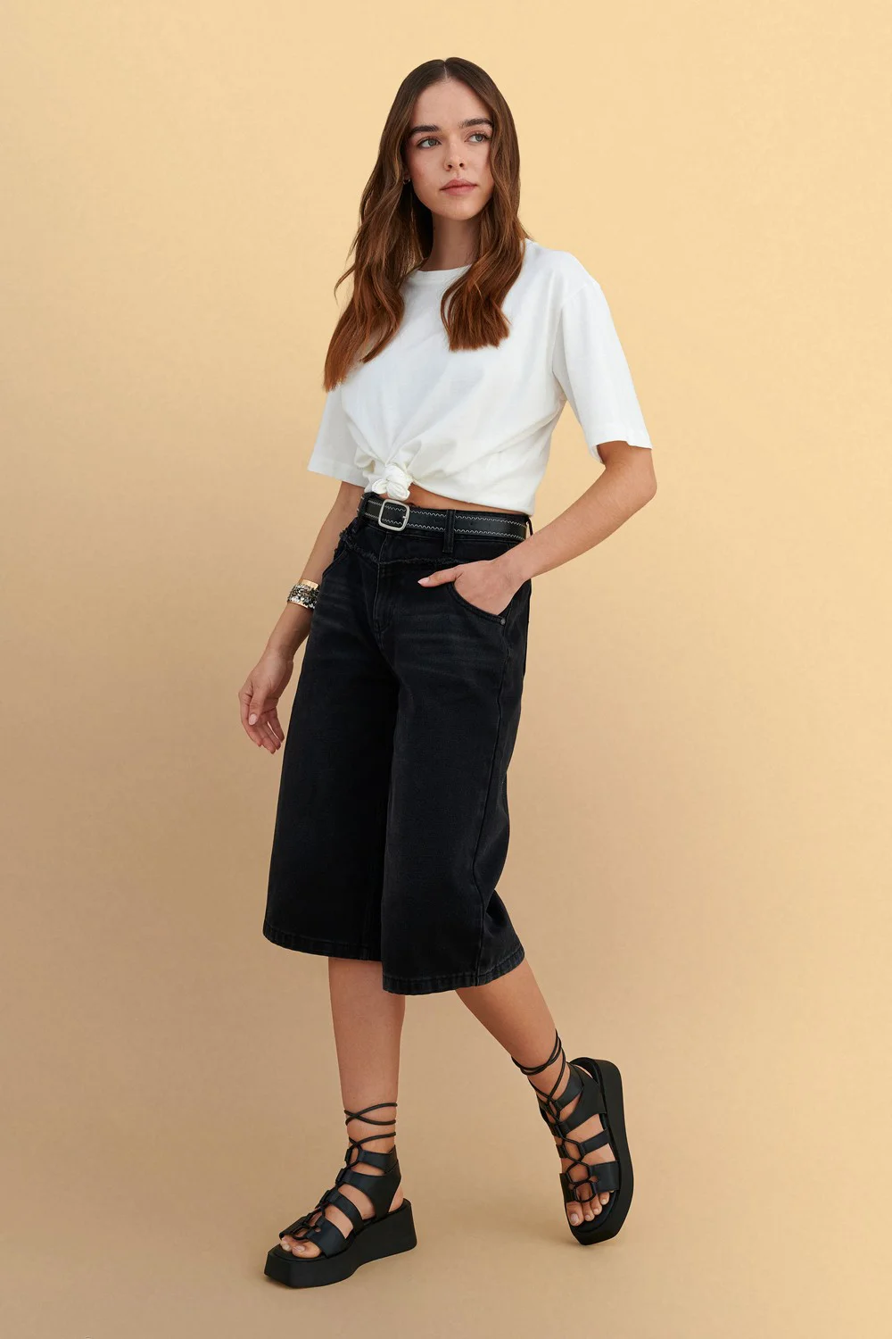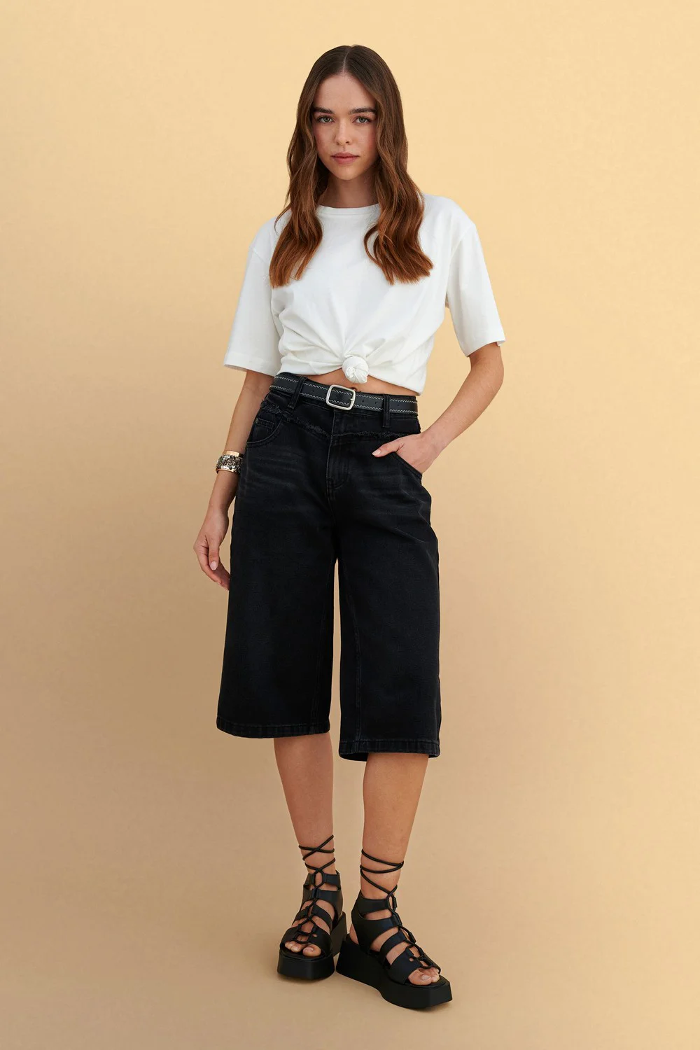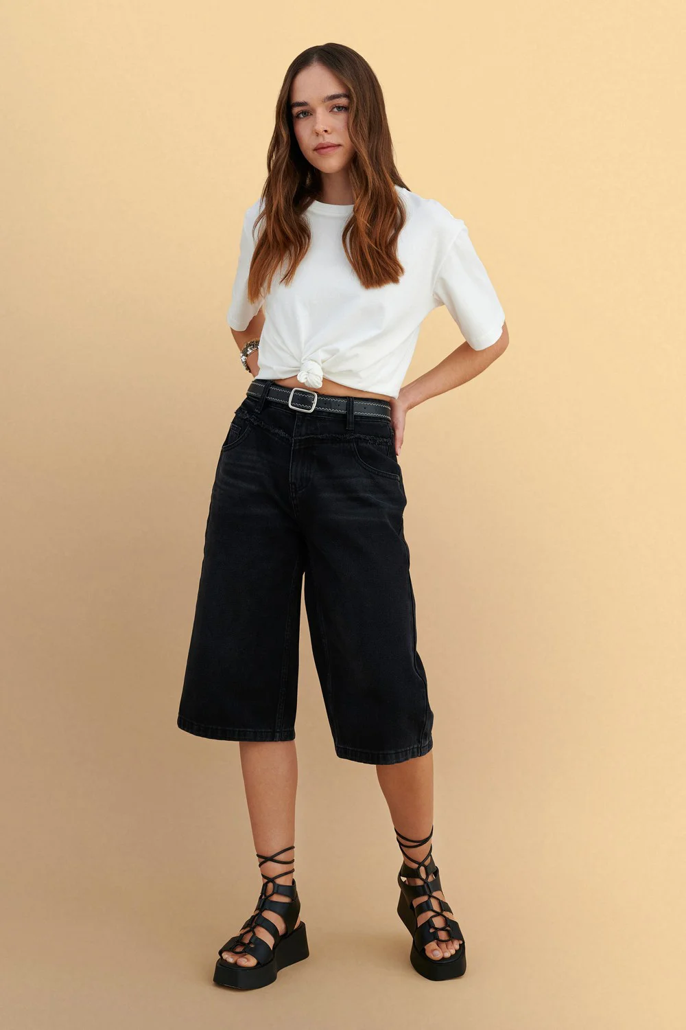 Βερμούδα τζιν μαύρη με ζώνη, άνετη και μοντέρνα, ιδανική για casual εμφανίσεις σε κάθε εποχή. Συνδυάζεται εύκολα με τοπ και αξεσουάρ για ένα στυλάτο καθημερινό outfit.