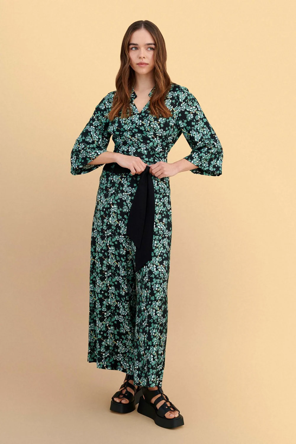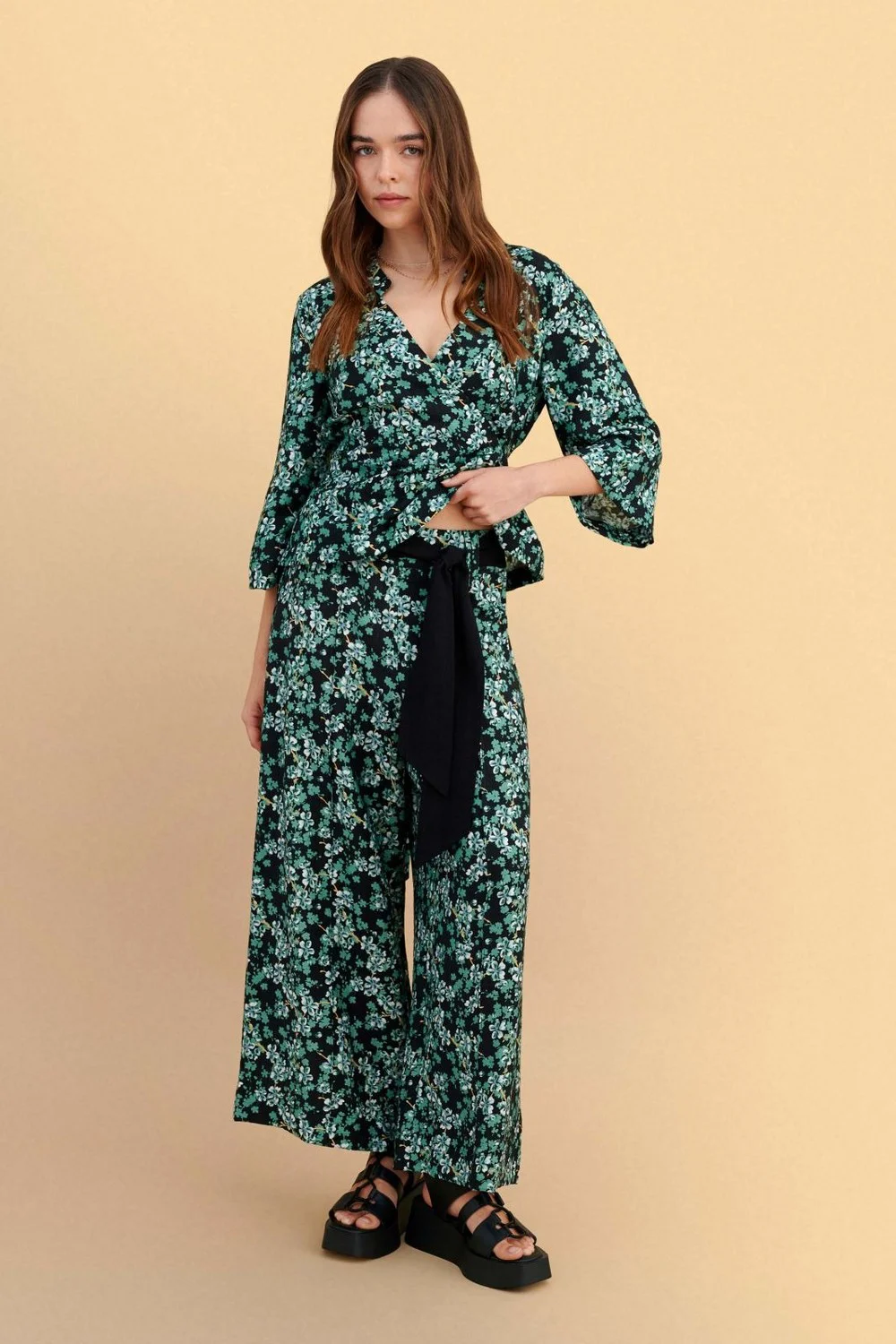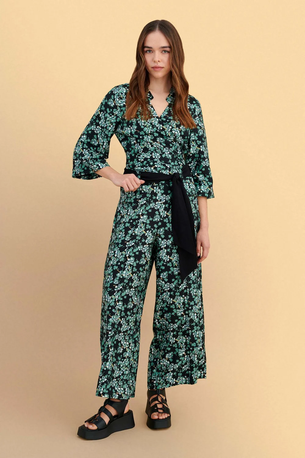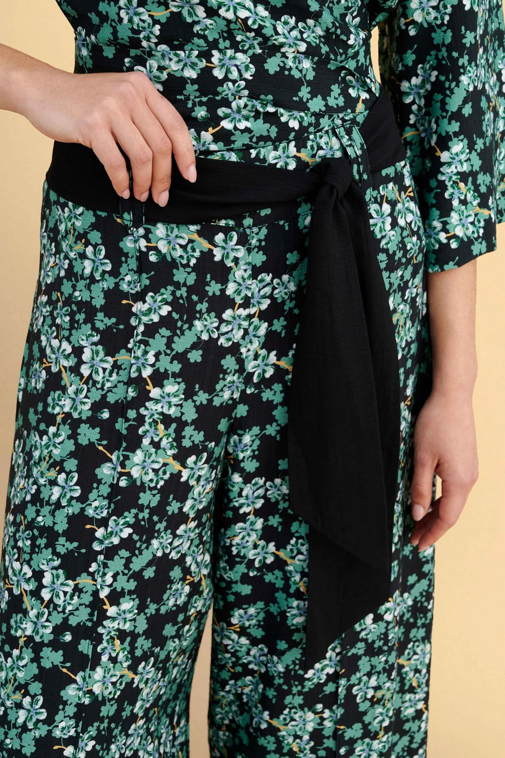 Ζιπ κιλότ φλοράλ με μαύρη ζώνη στη μέση, σε άνετη γραμμή και ελαφριά υφή. Ιδανικό για casual ή πιο επίσημες εμφανίσεις με μοντέρνο και στυλάτο χαρακτήρα. Συνδυάζεται εύκολα με διάφορα τοπ και παπούτσια.